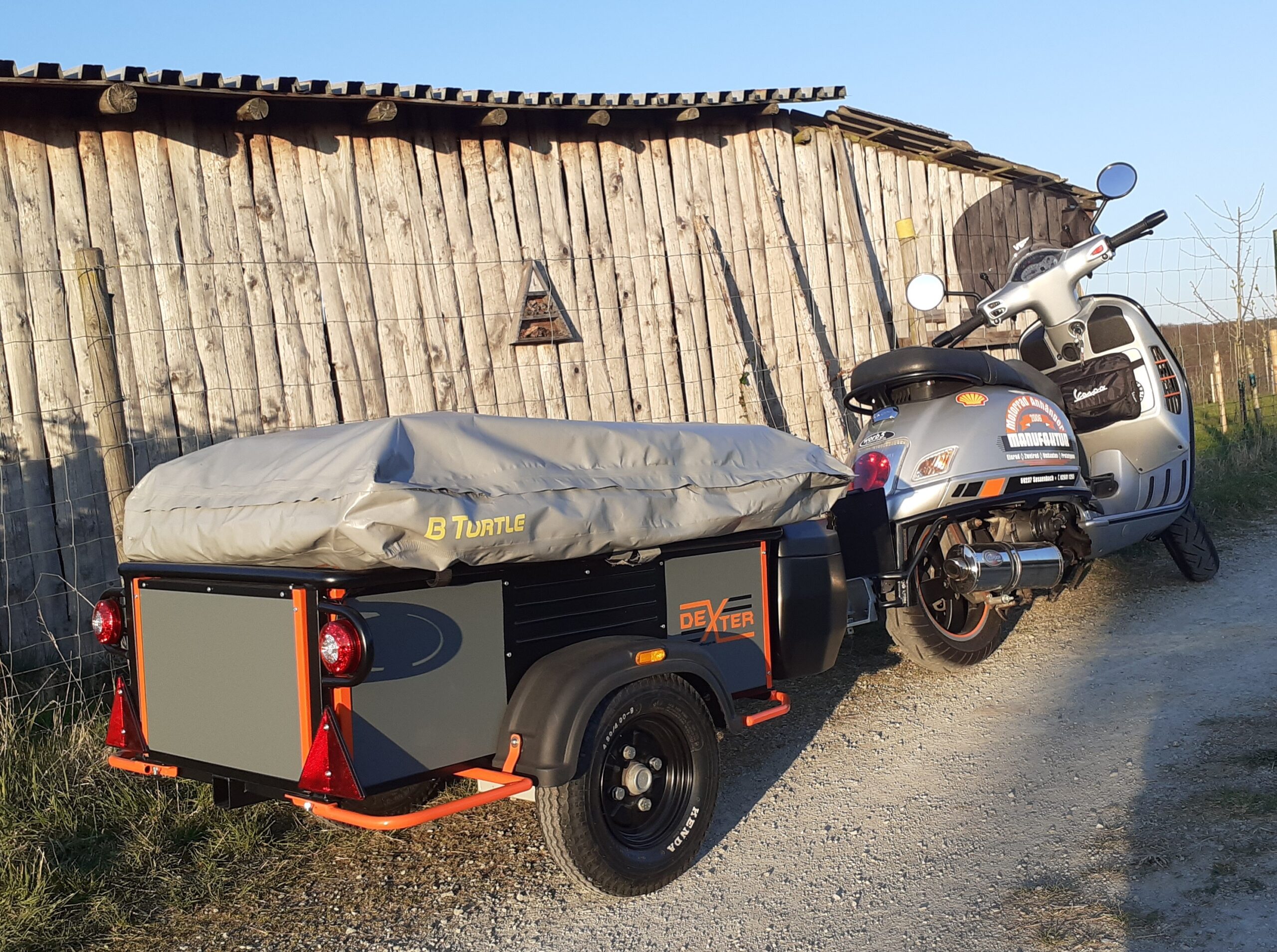 Kleiner kompakter Campinganhänger für Motorrad, Roller, Quad, Trike, Beiwagengespann, kleine Elektrofahrzeuge wie z.B. Twizy und kleine Oldtimer
